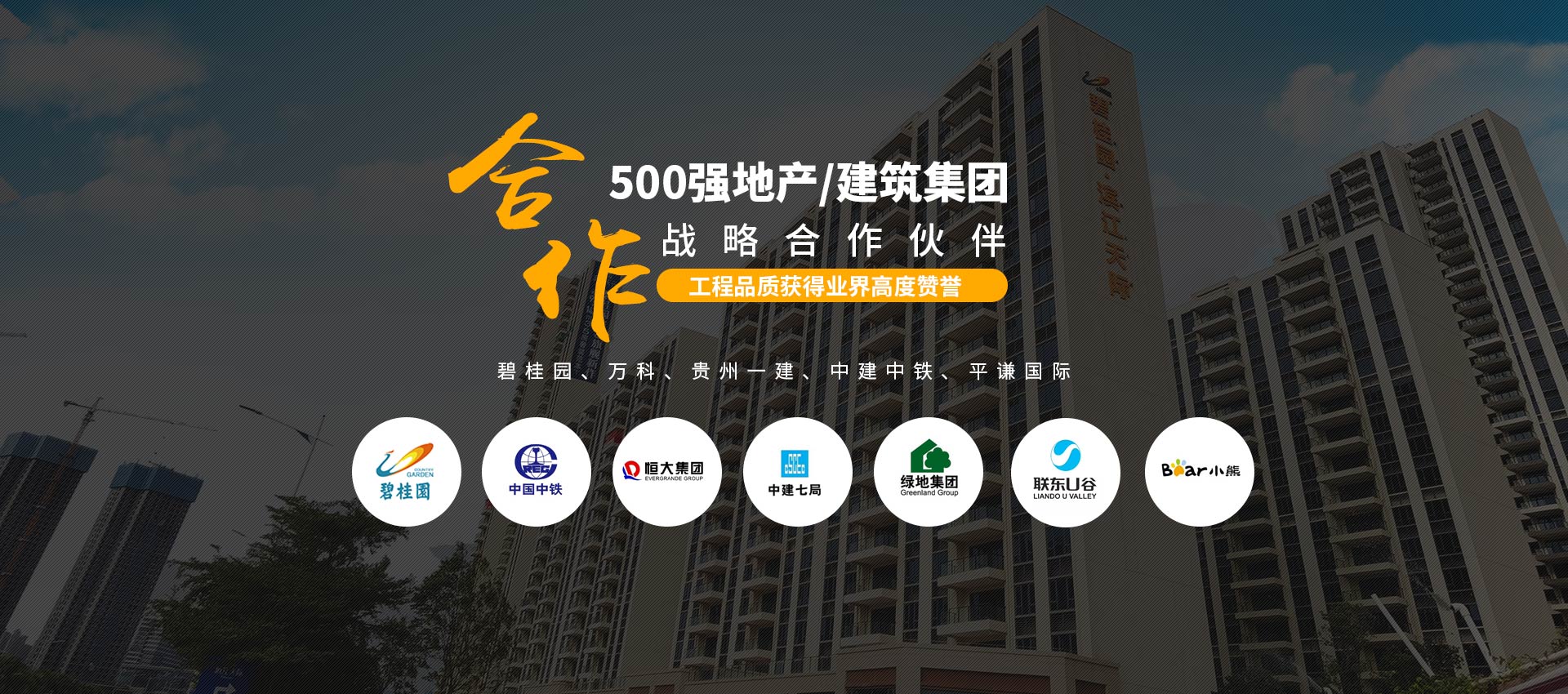 500強指定合作:與“碧桂園、萬科、貴州一建、中建中鐵、平謙國際、恒大、雅居樂”等地產/建筑集團建立長期的戰略合作關系。